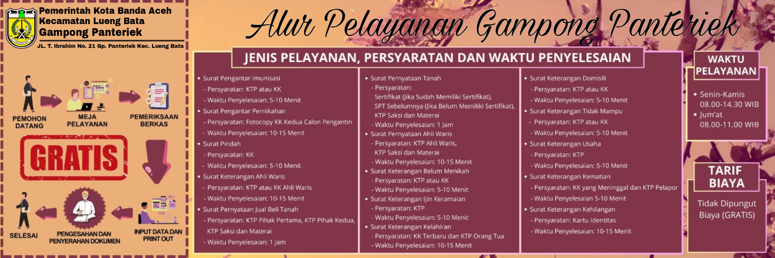 Gampong Panteriek dulunya tunduk pada kabupaten aceh besar dan kecamatan baiturrahma, lalu pada tahun 1985 Gampong Panteriek berubah status kota yaitu dengan terbentuknya kota madya Banda Aceh dan menjadi salah satu Gampong yang berada dalam kecamatan lueng bata kota banda aceh.