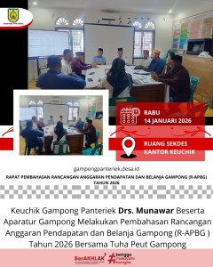 Keuchik Gampong Panteriek Drs. Munawar Beserta Aparatur Gampong Melakukan Pembahasan Rancangan Anggaran Pendapatan dan Belanja Gampong (R-APBG ) Tahun 2026 Bersama Tuha Peut Gampong