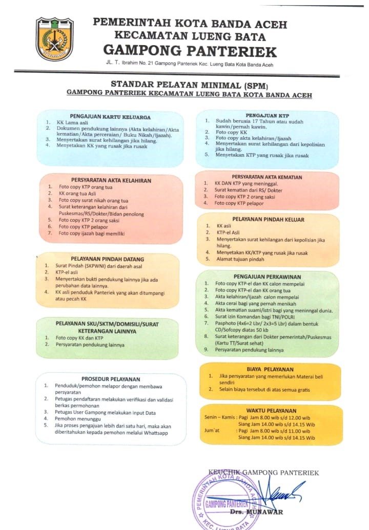 Jl. T IBRAHIM NO. 21 DUSUN BAMBU KODE POS : 23247 Gampong Panteriek Kecamatan Lueng Bata Kota Banda Aceh. Provinsi Aceh